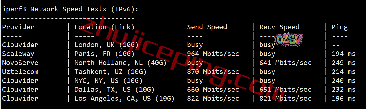 iperf3在IPv6环境下的测试数据: