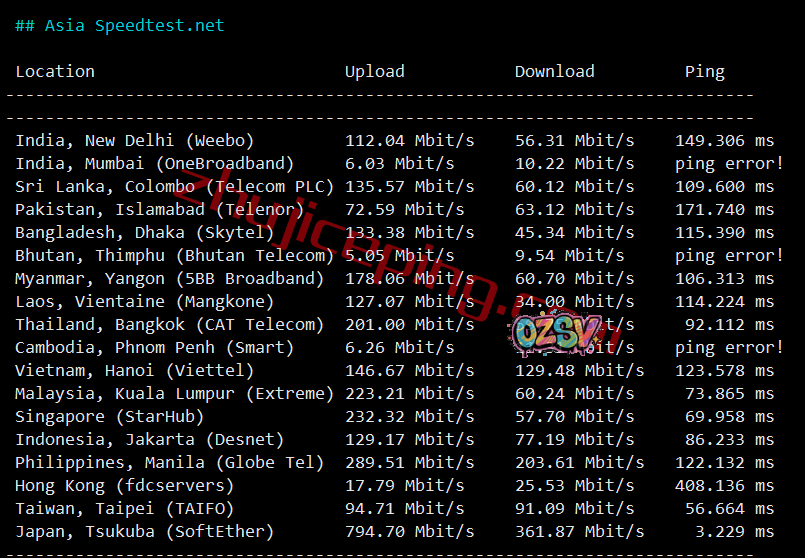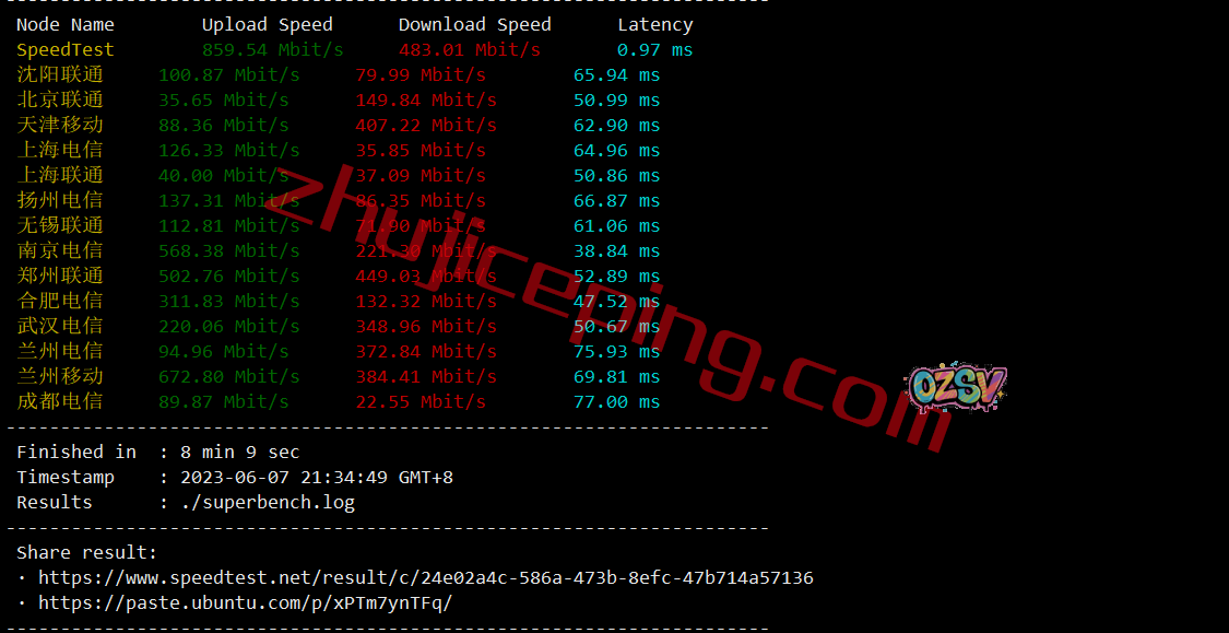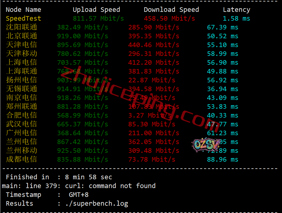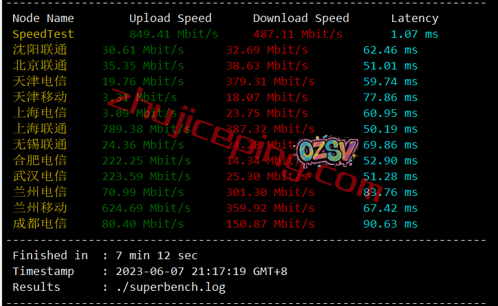 官方网站上面写的是500Mbps带宽,实际测试结果有1Gbps,下方为speedtest.net在国内的三网节点的测速数据: