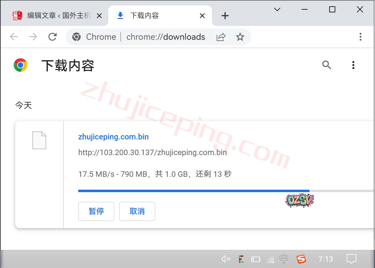存放在测试小鸡上面的文件,广州联通家庭带宽,下载速度大致如下: