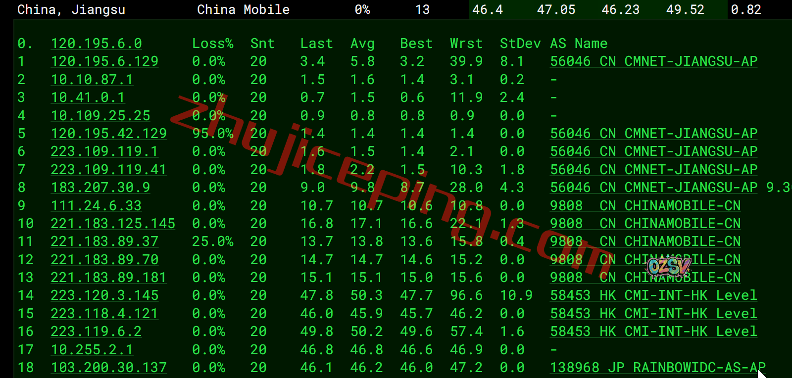 晚高峰,骨干网阻塞,我们看看晚上的网络测试数据: