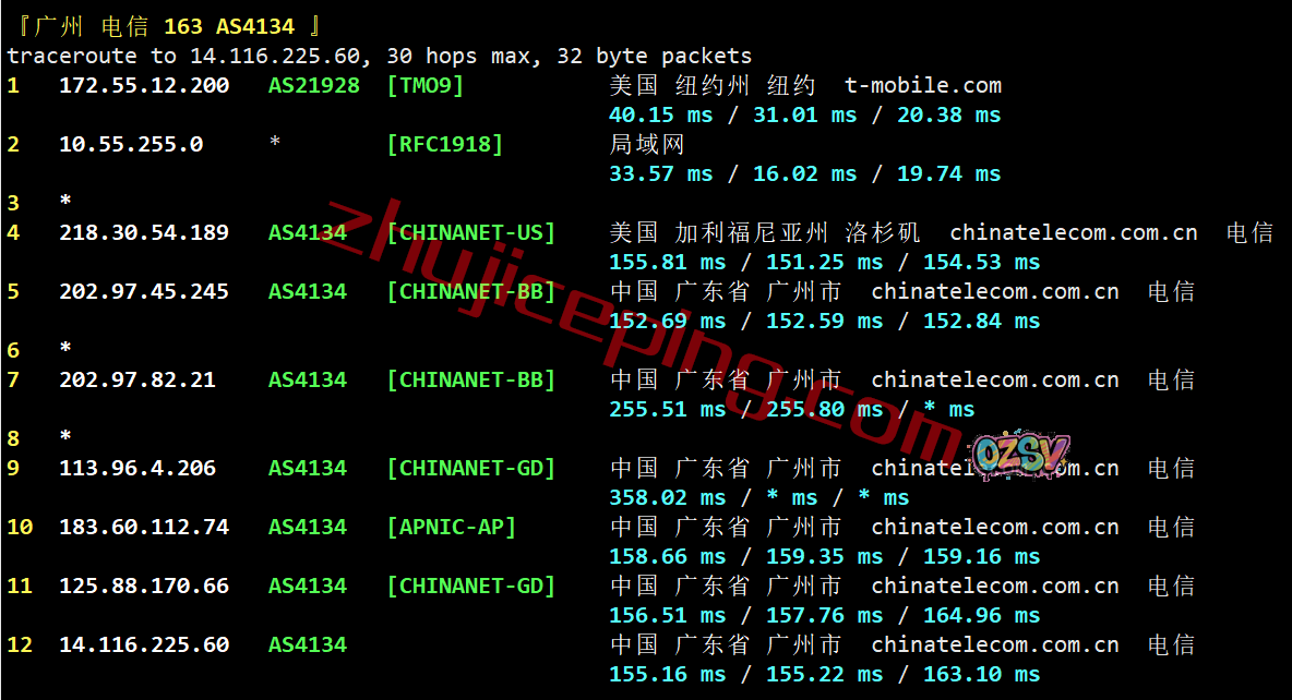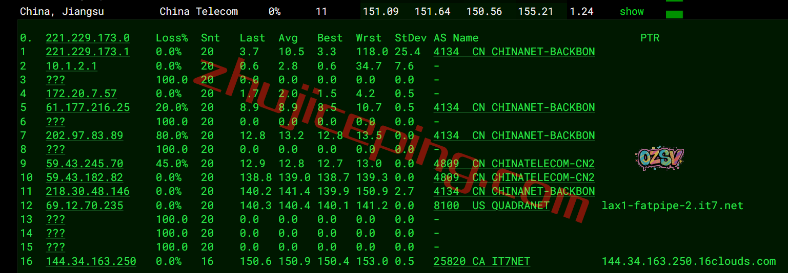 电信回程:从电信洛杉矶节点直连回国