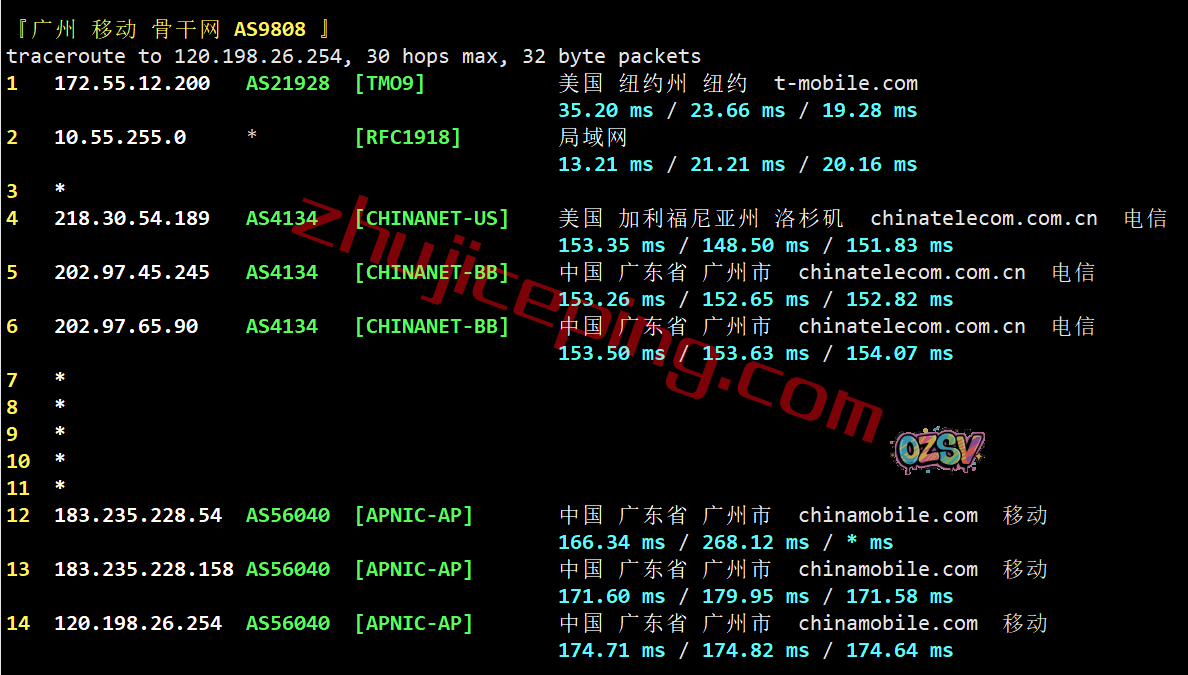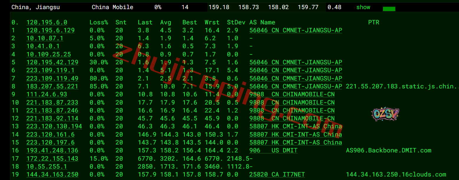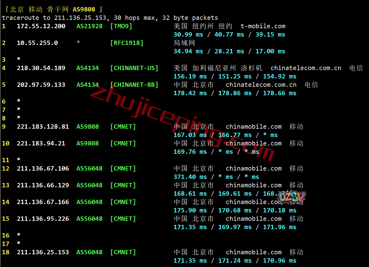 移动去程:直连移动美国洛杉矶节点,然后经过了DMIT的网络