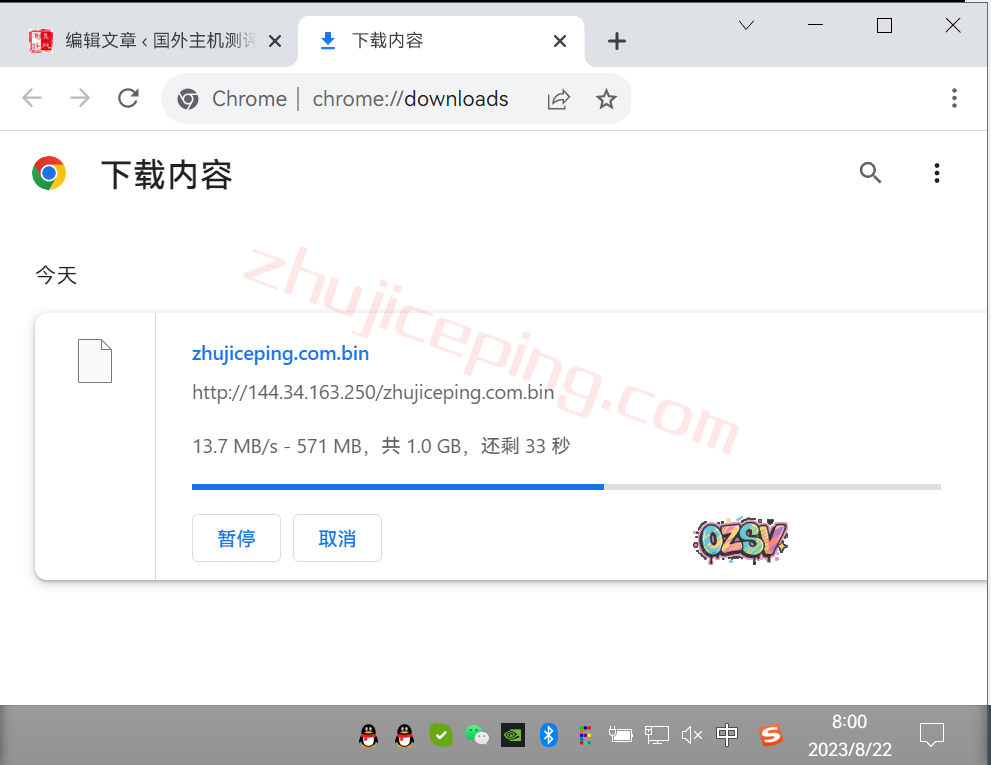 将文件存放在测试的VPS上面,广州联通家庭带宽用浏览器直接下载: