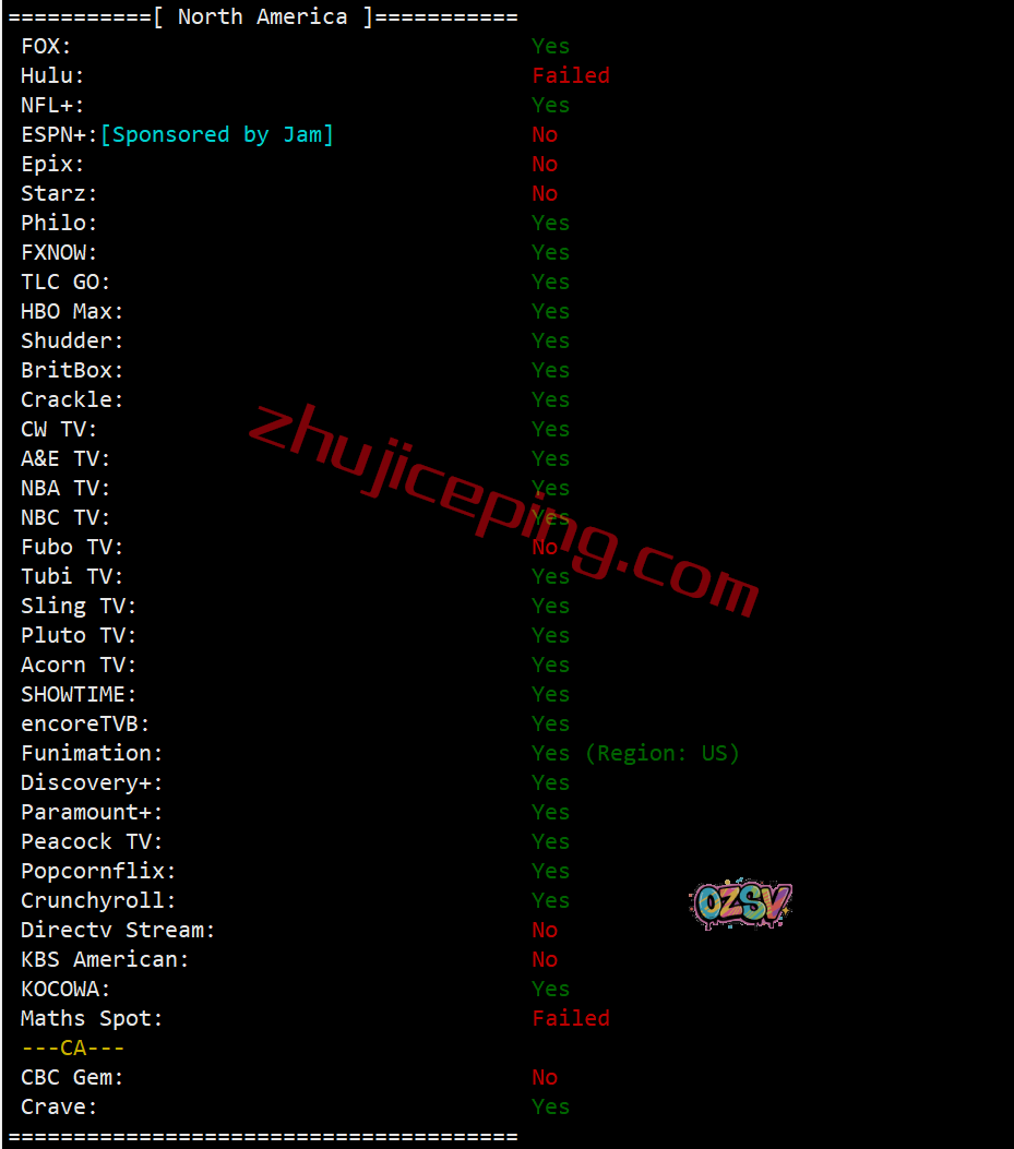 部分北美流媒体解锁结果: