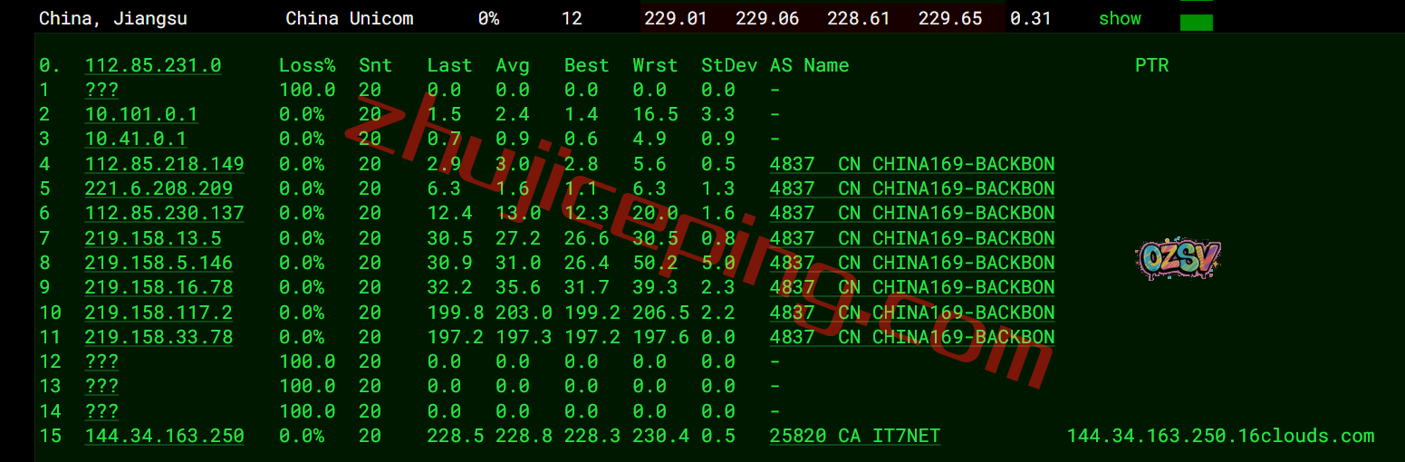 联通去程:直连联通美国圣何塞节点然后去洛杉矶
