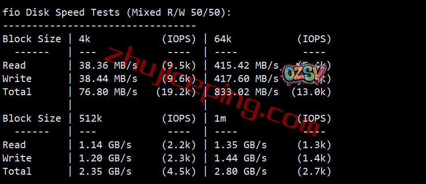 FIO测试读写数据的大致结果如下: