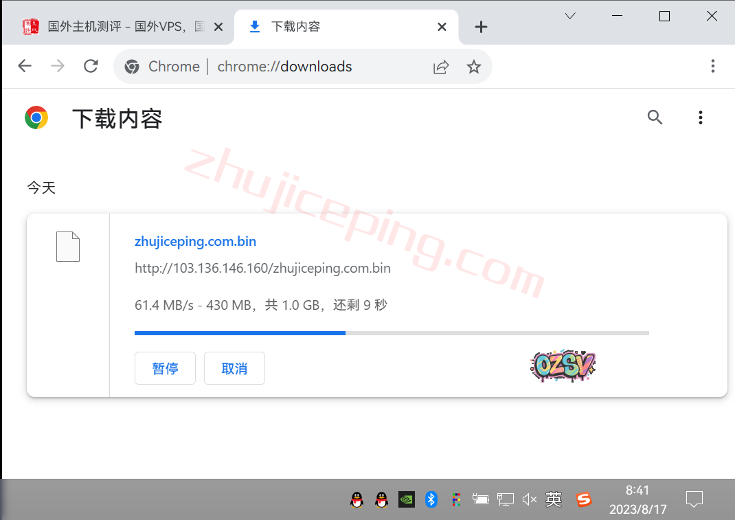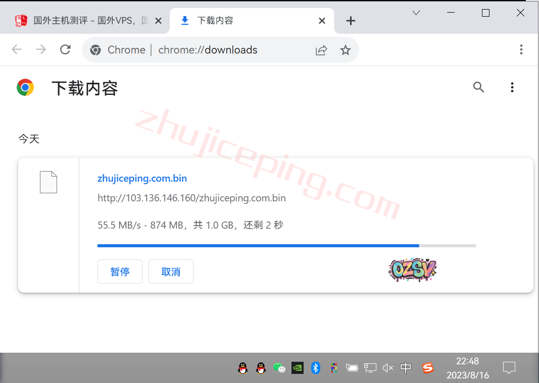 存放在测试VPS上面的文件,广州联通家庭带宽直接用浏览器下载: