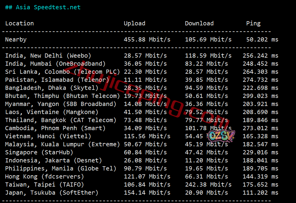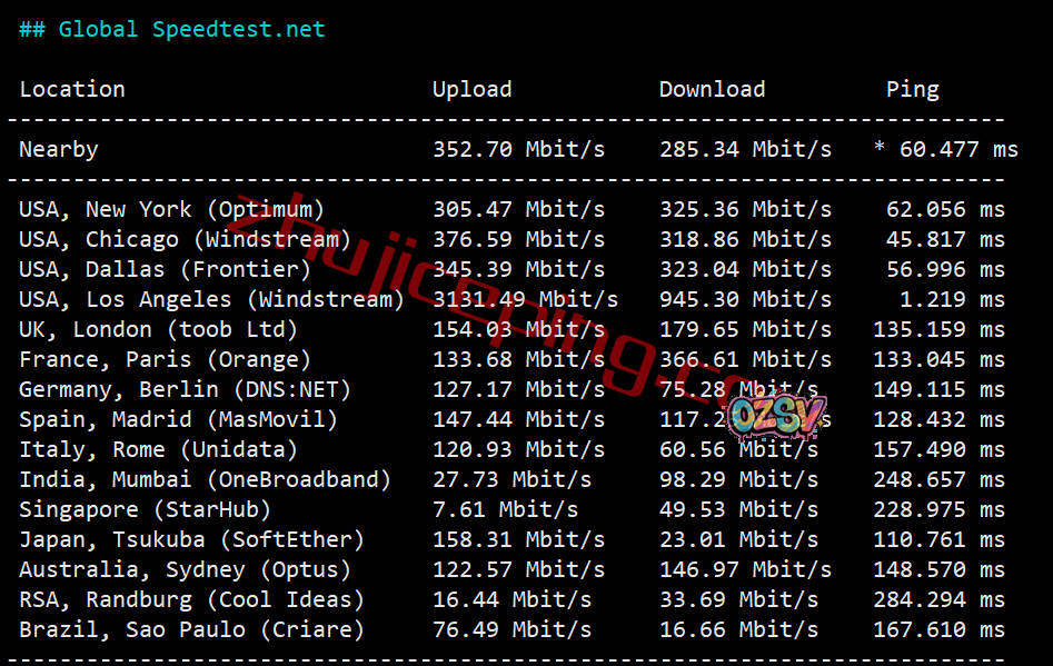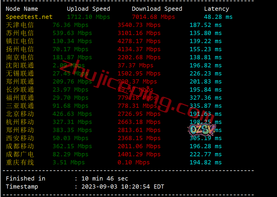 speedtest在国内的三网节点直接测试一波上下行,看看能跑多少吧?大致测试结果: