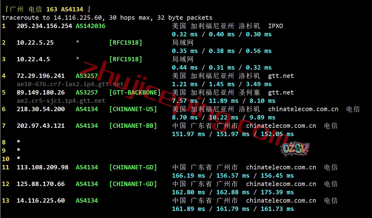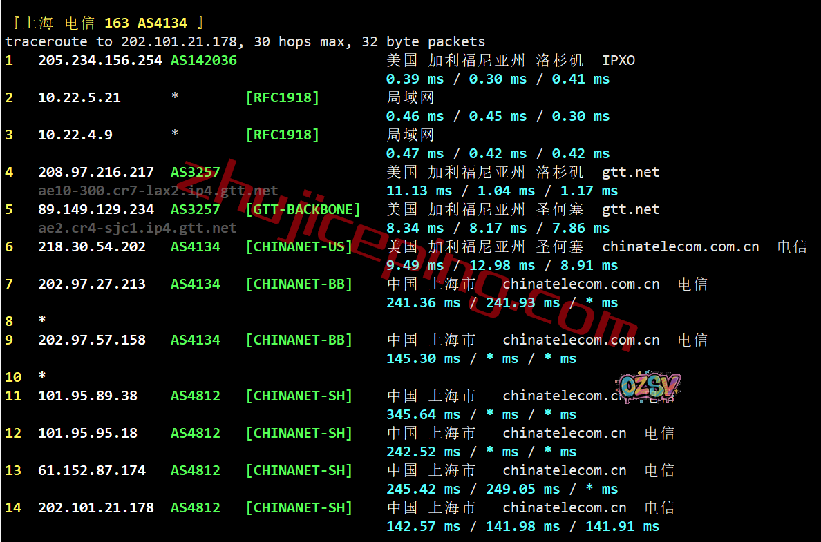 电信回程:走GTT到圣何塞,从电信圣何塞/洛杉矶节点直连回国