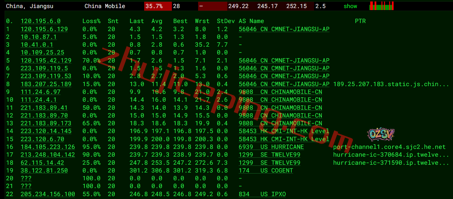 移动去程:直连移动洛杉矶节点,然后走he.net转twelve99接cogent去机房