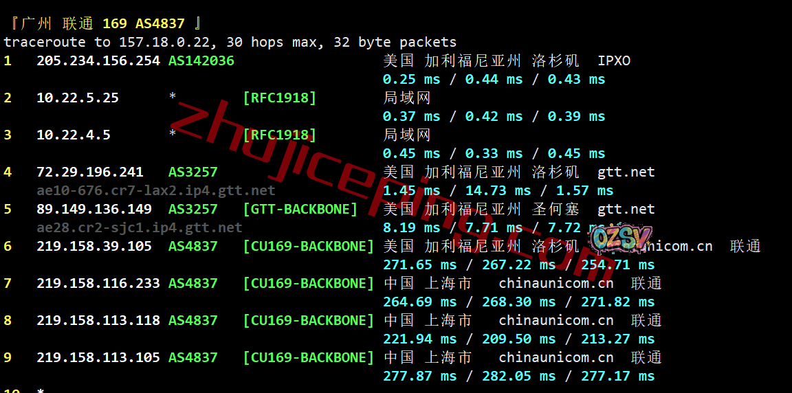 广州方向:走GTT到圣何塞,再回洛杉矶,从联通洛杉矶节点直连回国