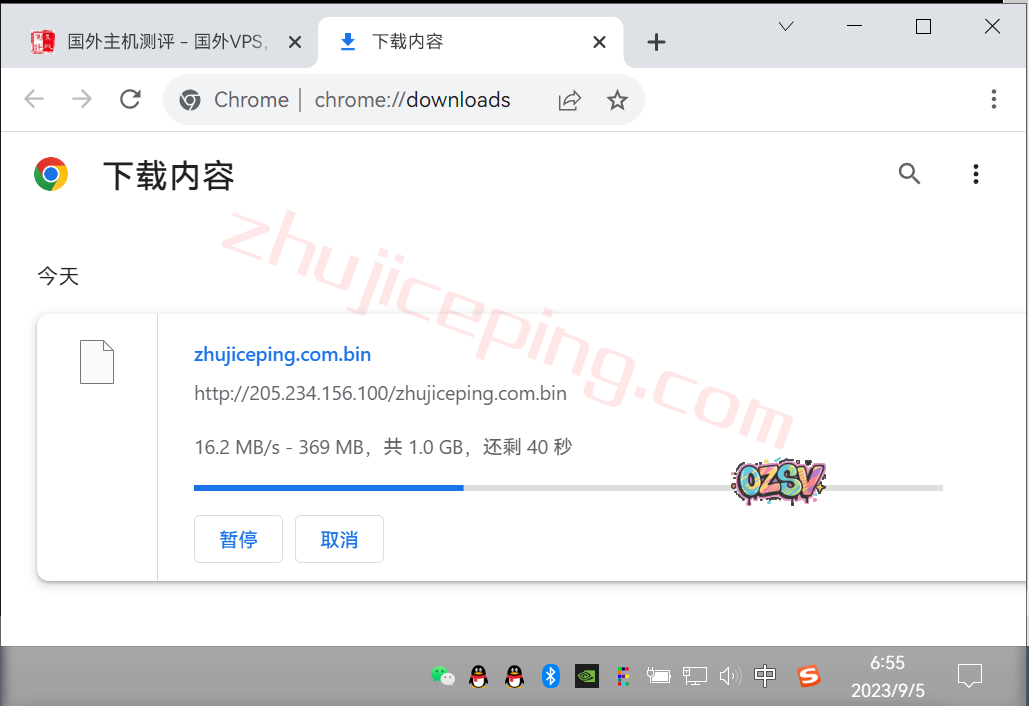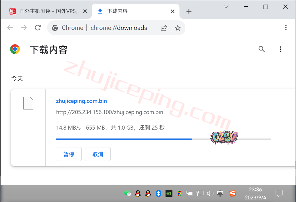 存放在测试vps上面的文件,广州联通家庭宽带的下载速度如下: