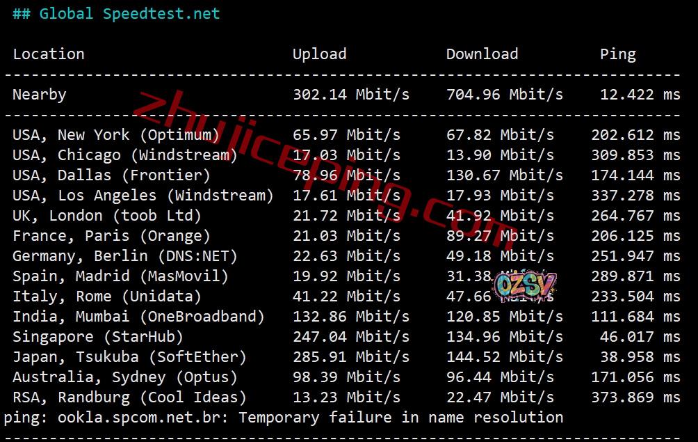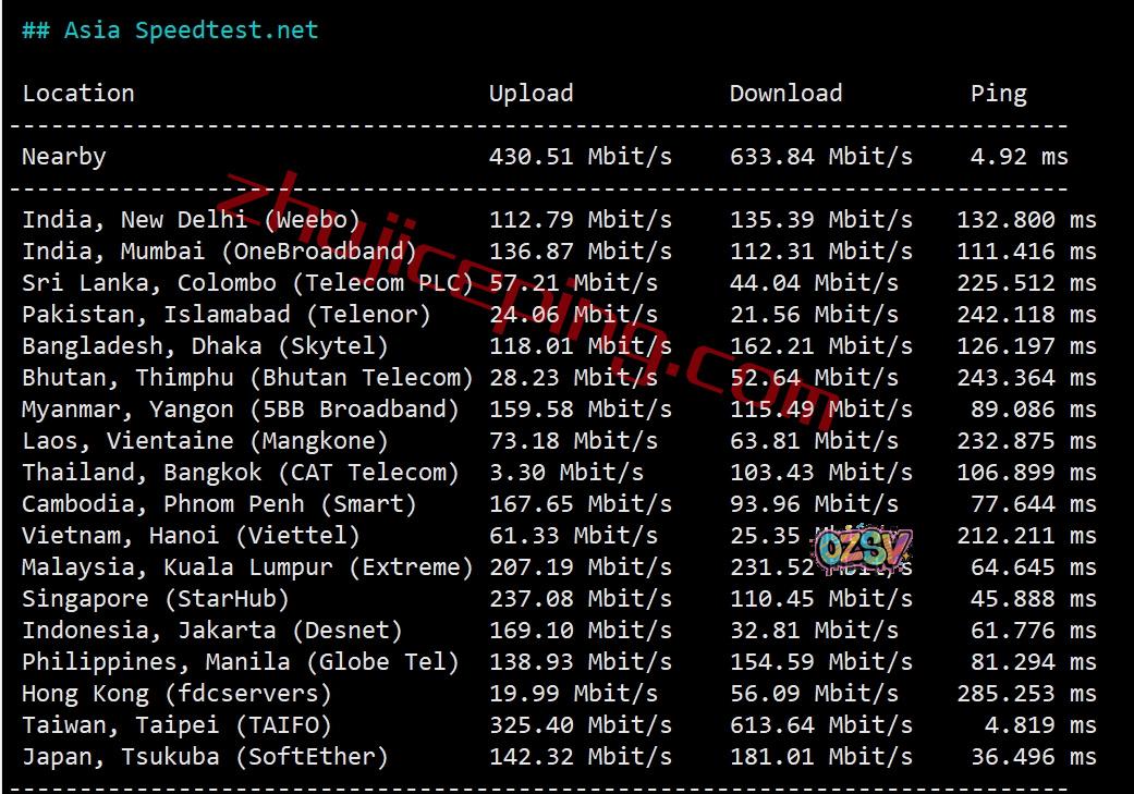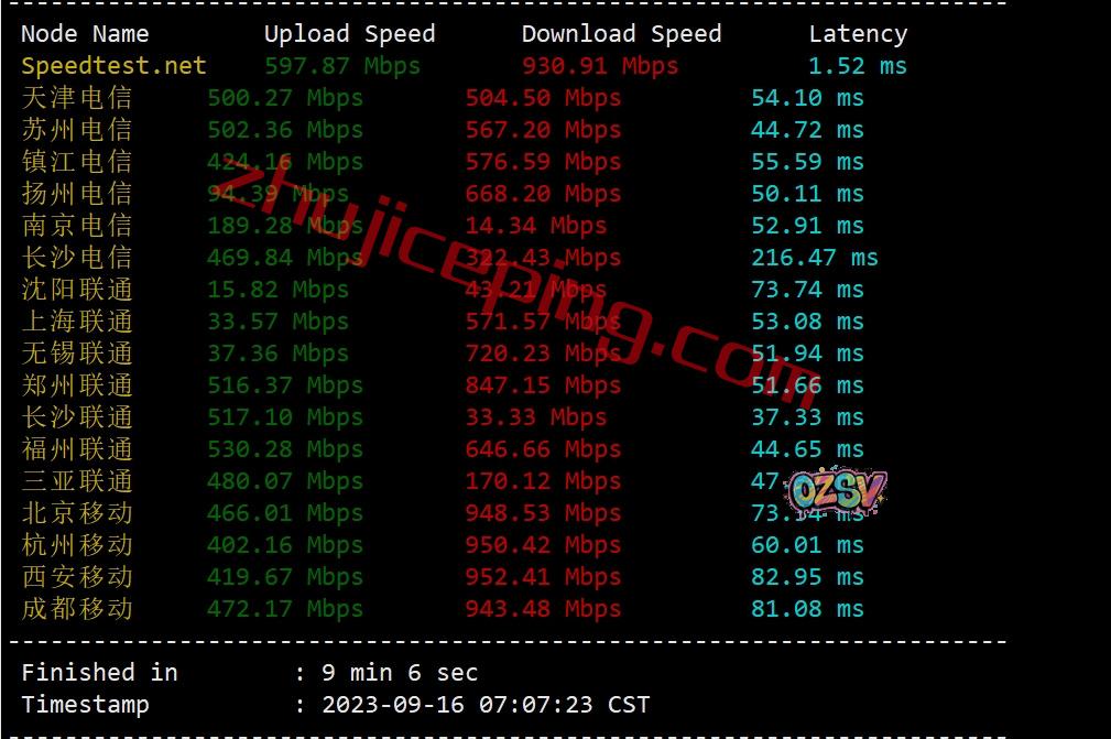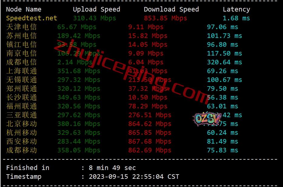 用speedtest在大陆的三网多节点跑一圈上下行带宽,看看测试效果: