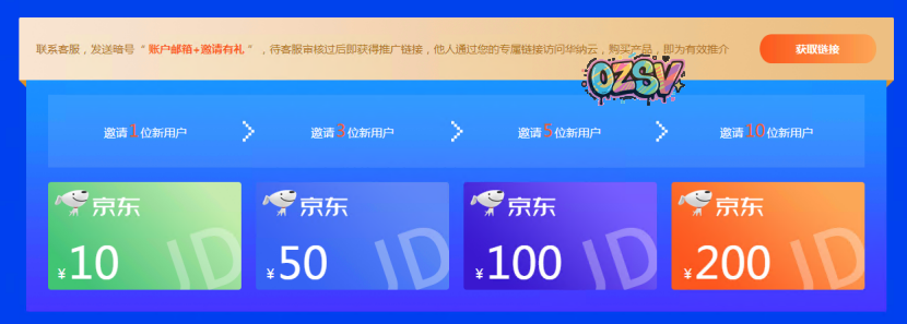 过去的几年里,华纳云不管是产品性能上还是客户服务上,都深受好评。此次年终感恩活动,为了回馈老客户对华纳云多年的支持,特意推出老客邀新有礼活动。活动期间邀请新用户下单成功满60元。最高可领取价值200元的京东购物卡!快来找华纳云官网客服咨询,报名参与~
