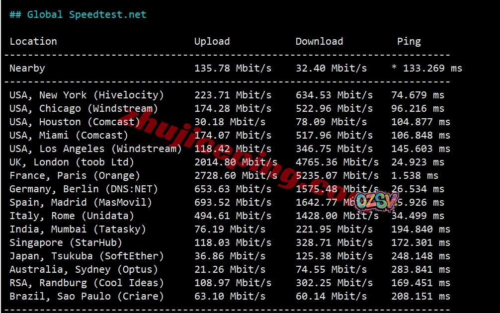 speedtest部分国际节点测试: