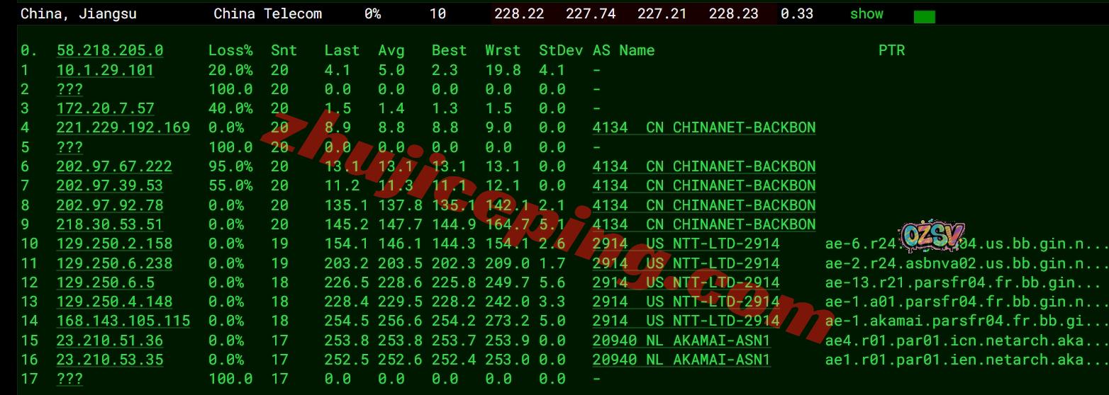 电信去程:直连电信圣何塞节点然后走NTT从阿什本出海去法国