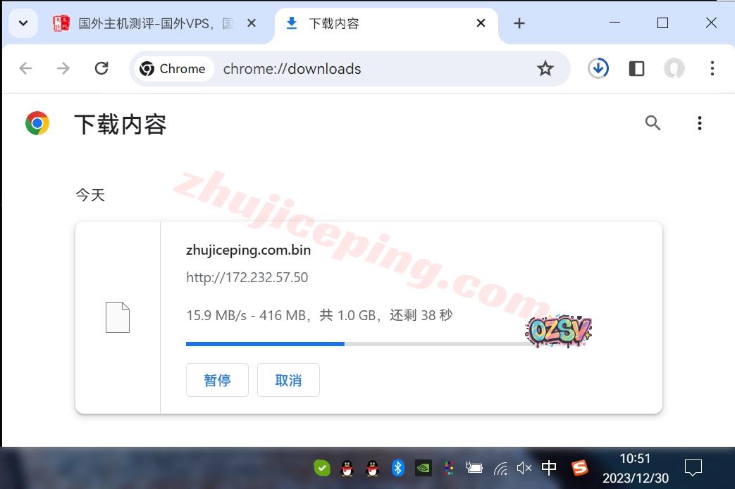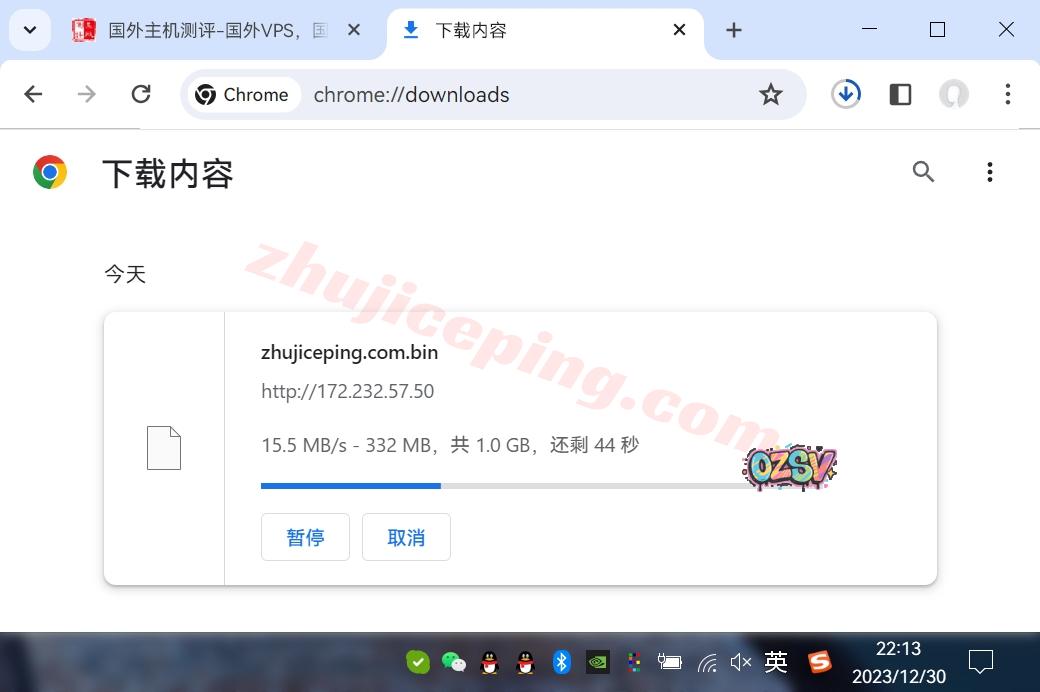 存放在测试云服务器上的文件,广州联通家宽直接用浏览器下载,看看速度: