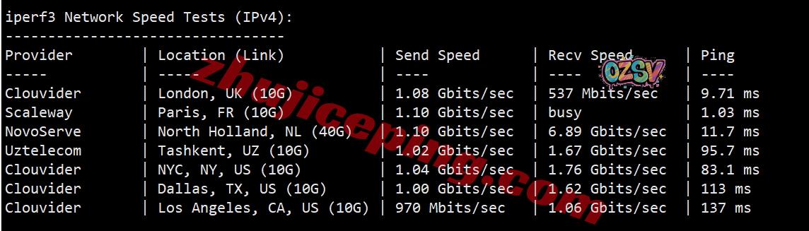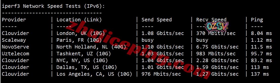 iperf3,IPv6环境下,几个欧美节点测试: