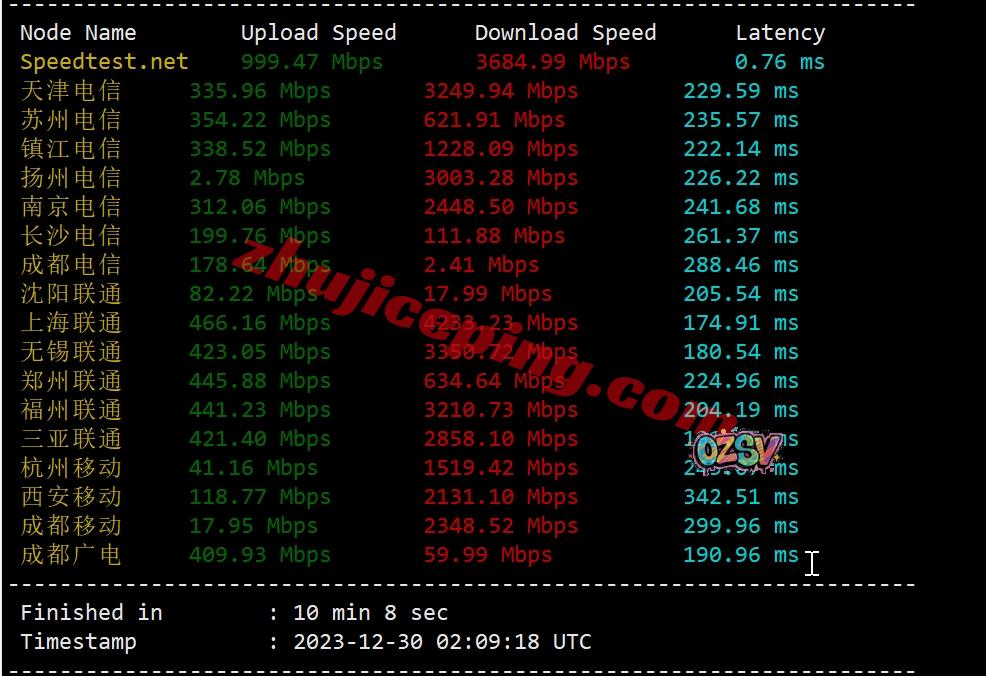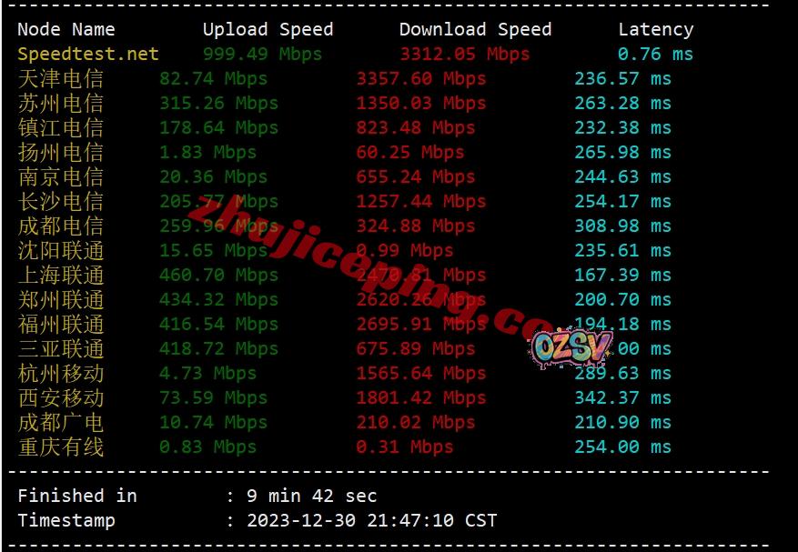 speedtest在国内的三网多节点来测试带宽上下行,看看能跑多少吧: