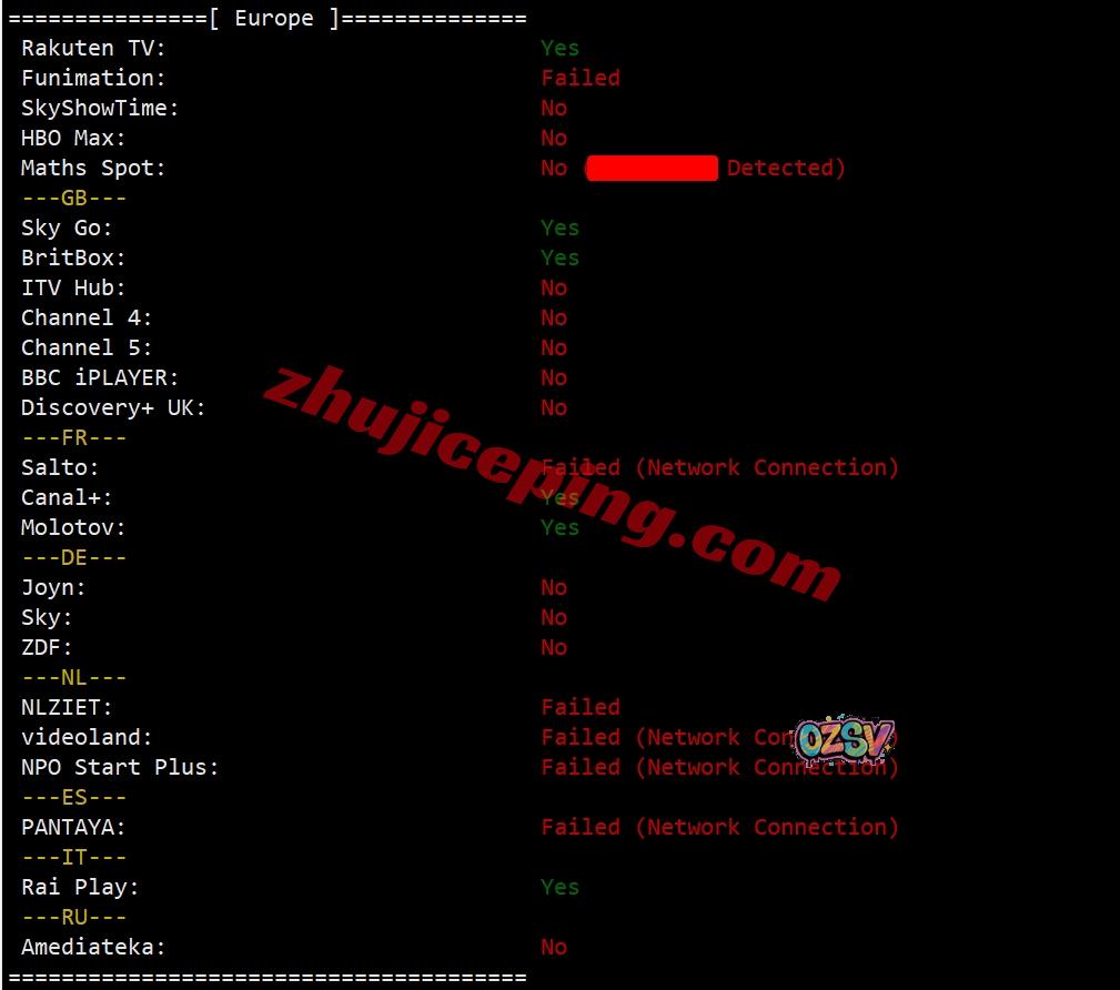 部分欧洲流媒体解锁测试: