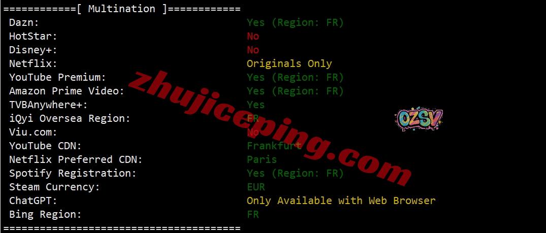 部分跨区域流媒体解锁测试: