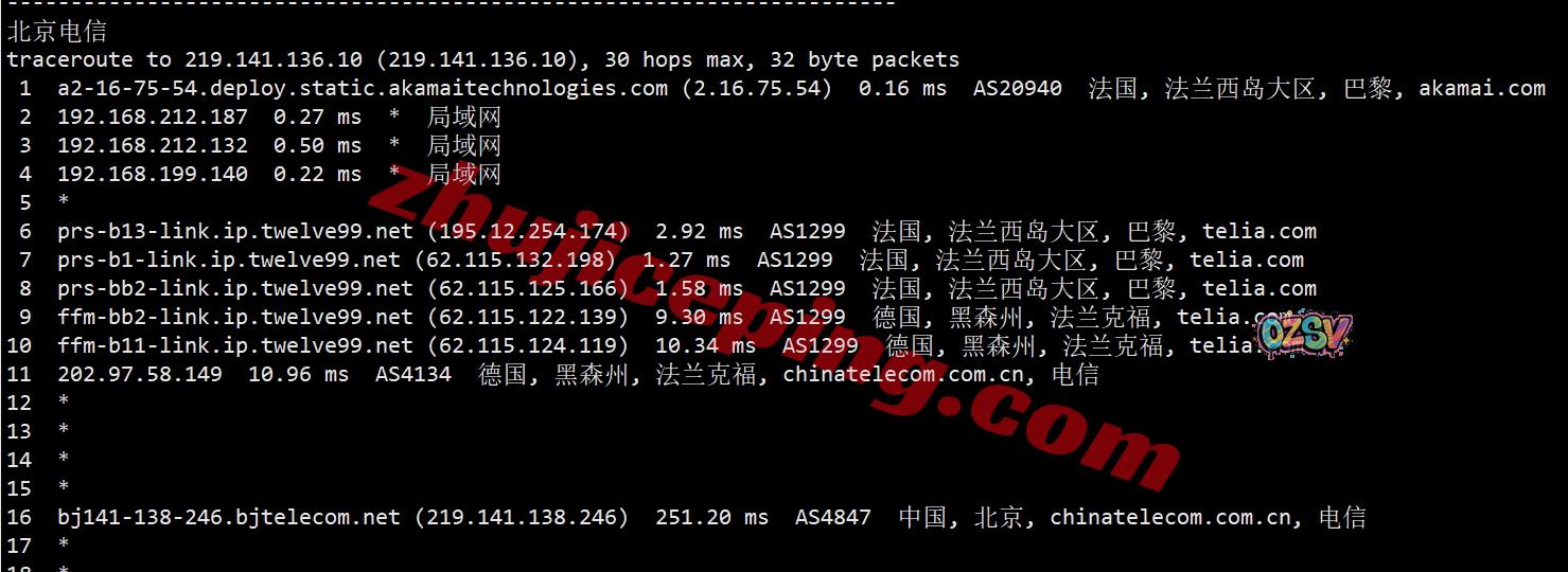 北京/广州:走telia到德国法兰克福,从电信法兰克福节点直连回国