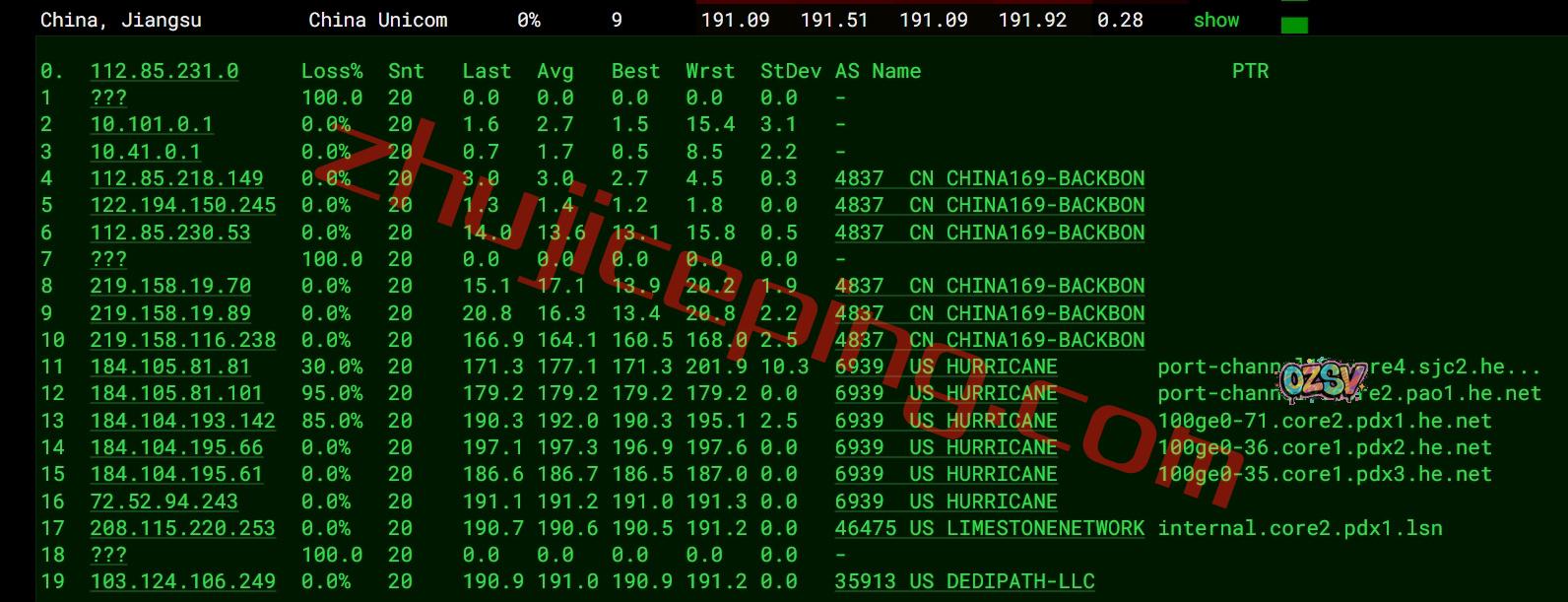 联通去程:直连联通圣何塞节点,然后转HE.NET再去波特兰