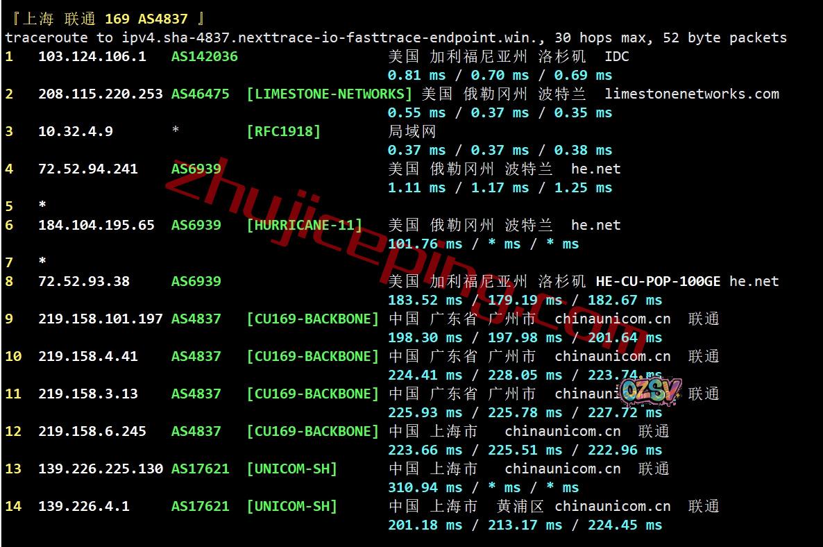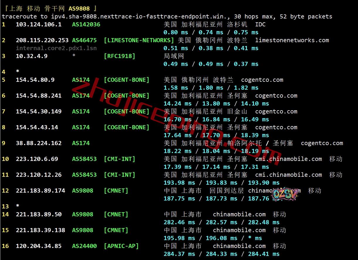 上海方向:走cogent到圣何塞,从移动圣何塞节点直连回国