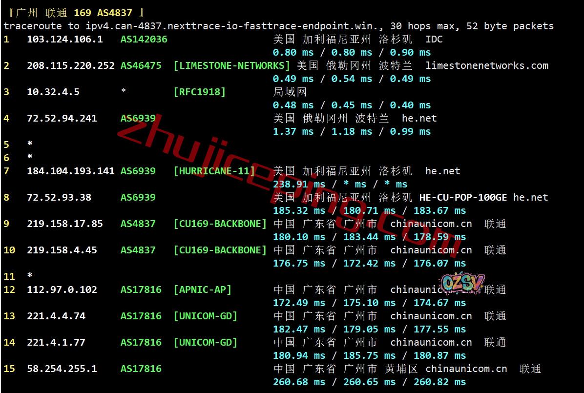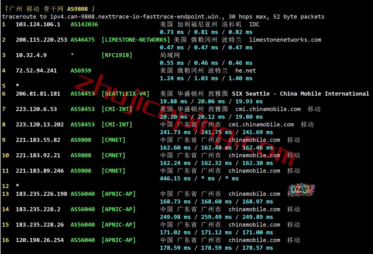 广州方向:走HE.NET到西雅图,从移动西雅图节点直连回国