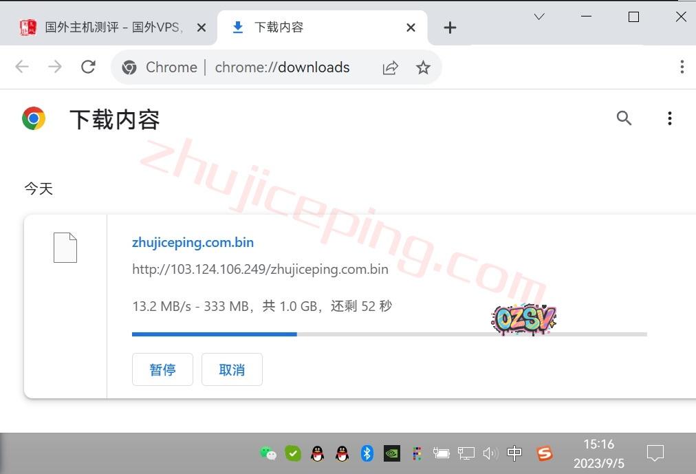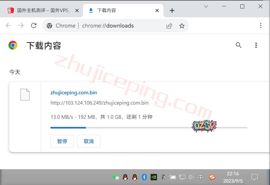 存放在测试VPS上的文件,广州联通家庭宽带,直接浏览器下载,看看速度: