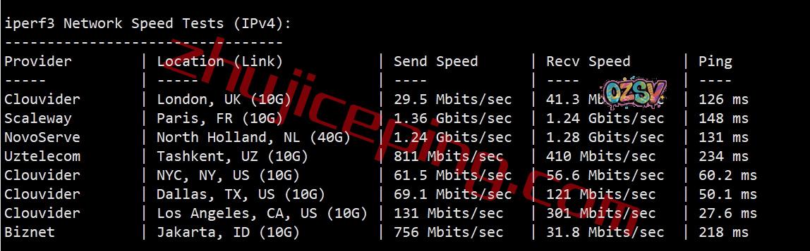 iperf3的几个欧美节点的测试数据: