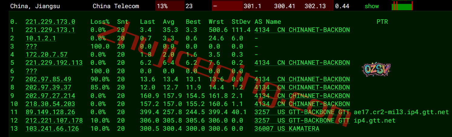 网络方面,电信走国际线路GTT从德国出海回国,联通是走GTT到德国联通节点直连回来,移动也是走GTT、部分绕了美国、部分是从德国法兰克福节点直连回国。总体来看,联通的效果比电信和移动要好不少。