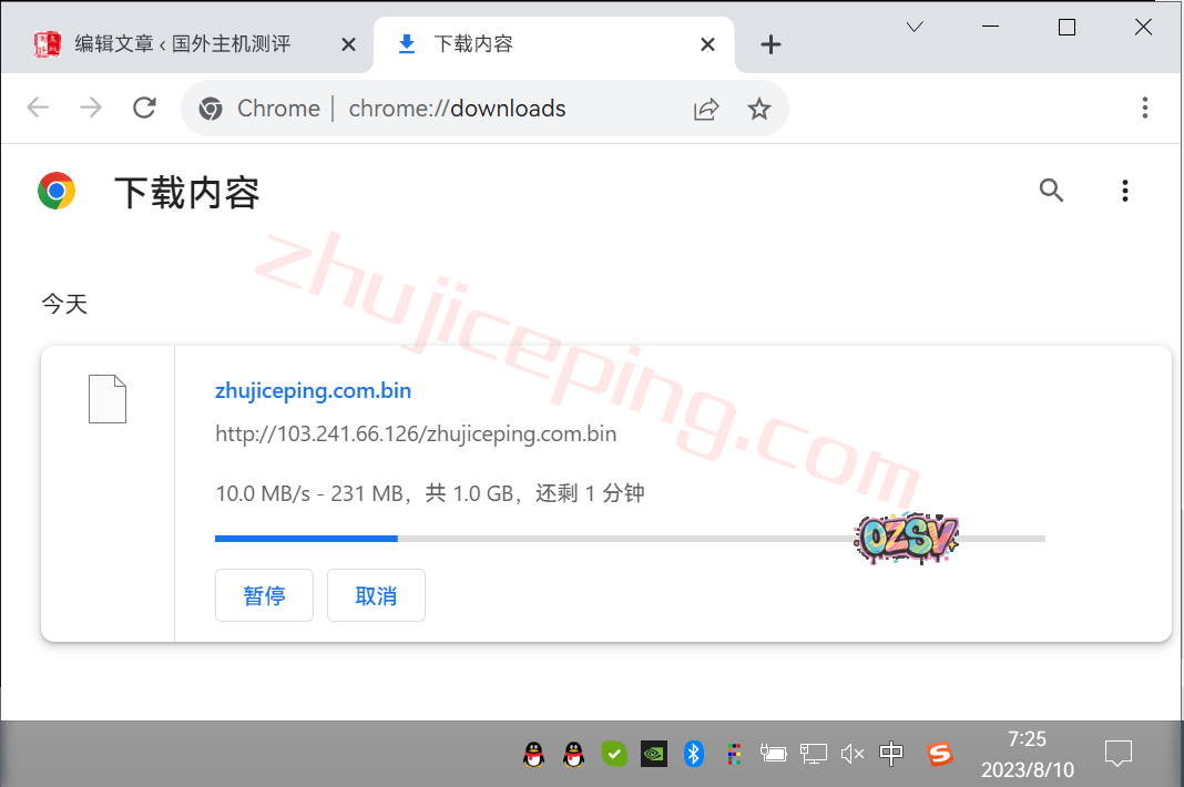 存放在测试云服务器上面的文件,广州联通直接用浏览器下载: