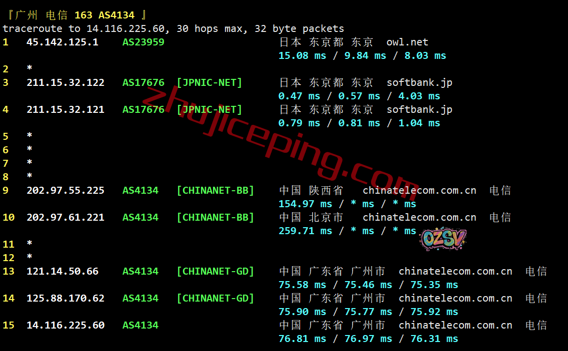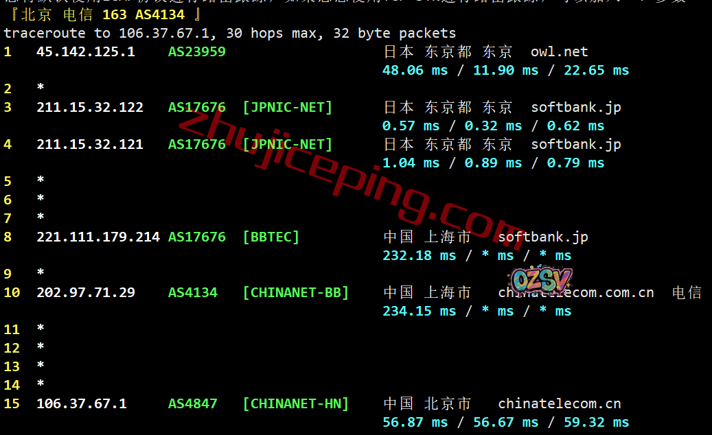 电信回程:走软银线路