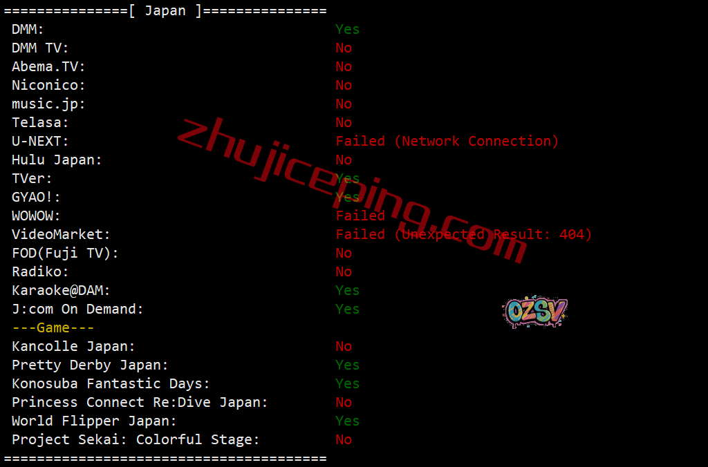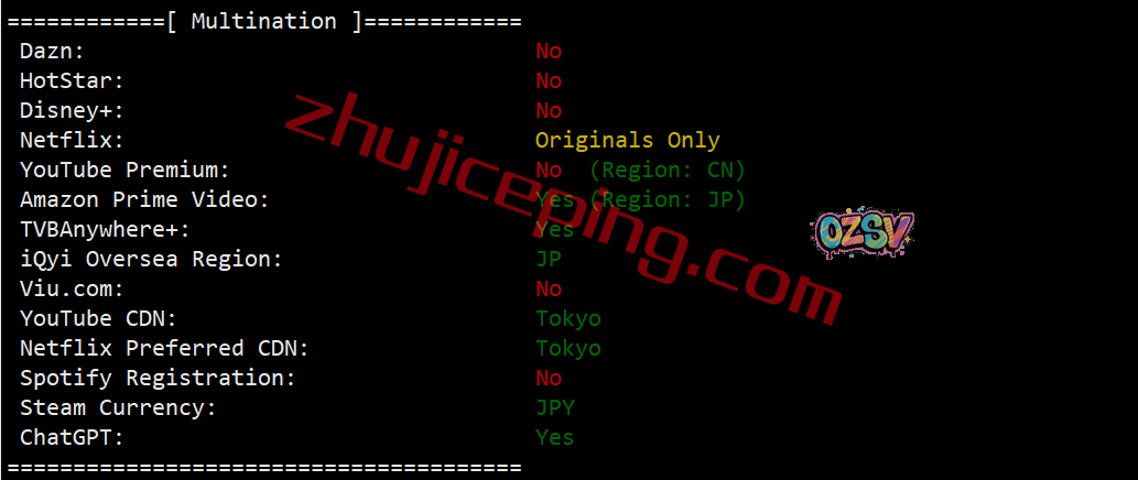 部分跨区域流媒体解锁测试: