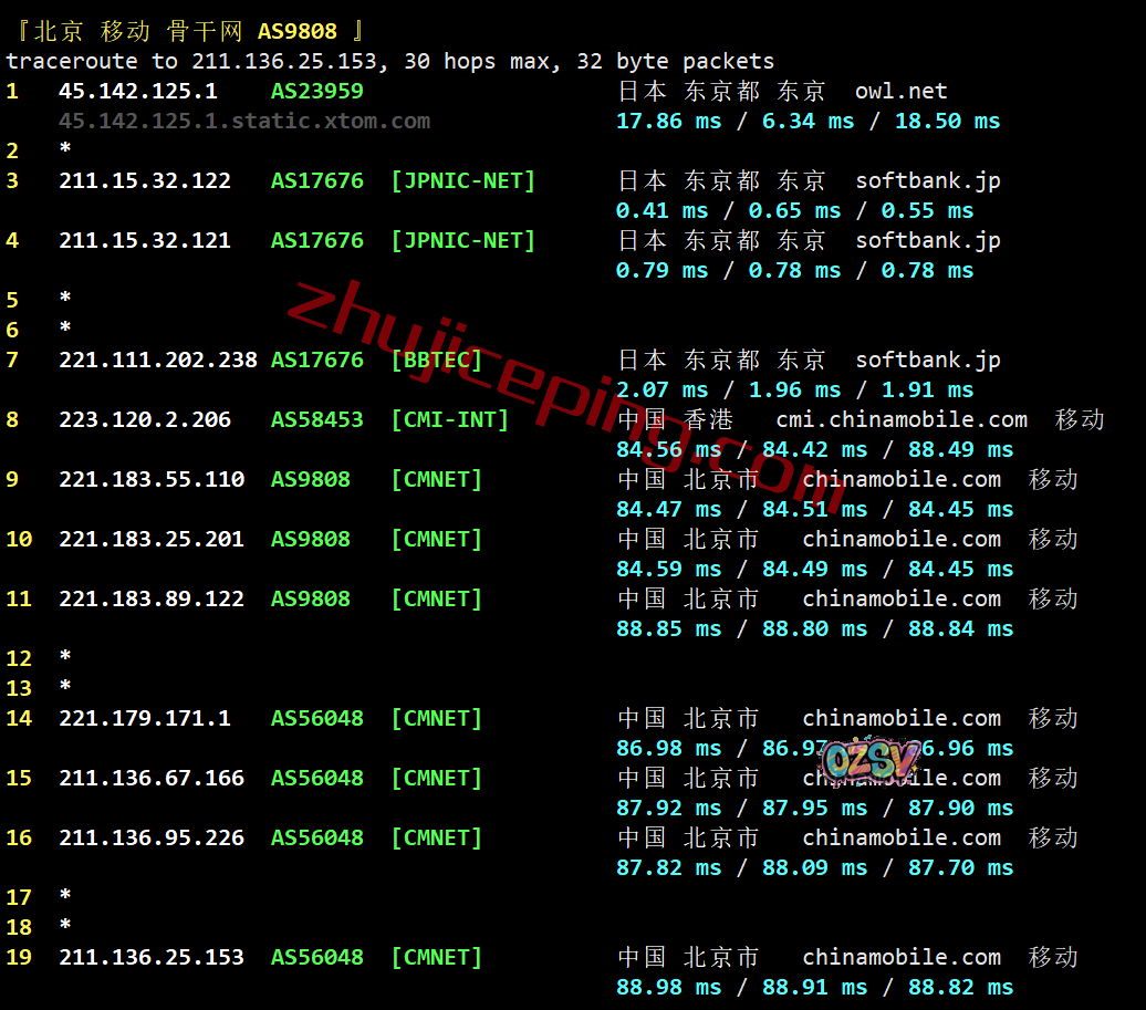 北京/广州方向:走软银到香港,从移动香港节点直连回内地