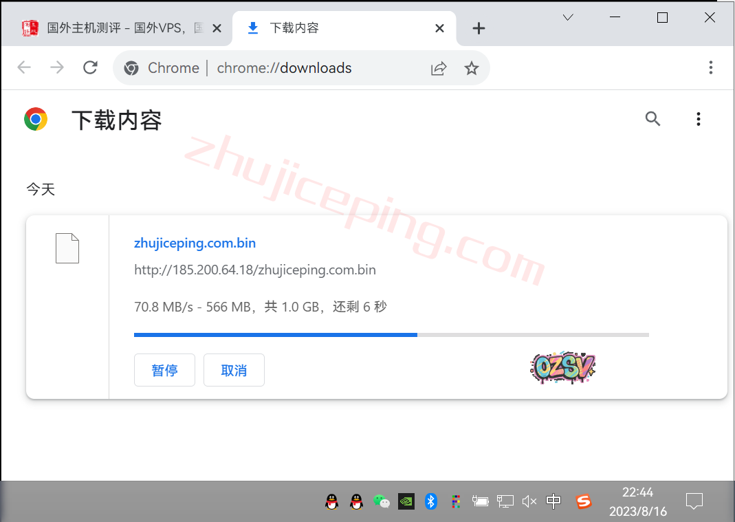 存放在测试云服务器上面的文件,广州联通家庭宽带,直接用浏览器下载,看看速度: