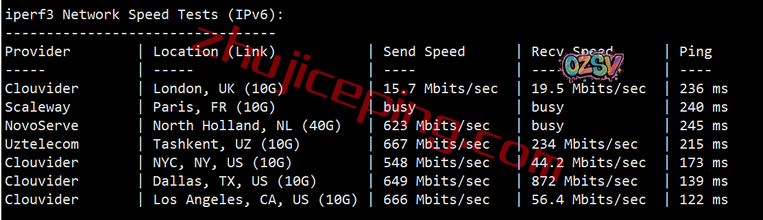还是iperf3,切换到IPv6环境下的数据: