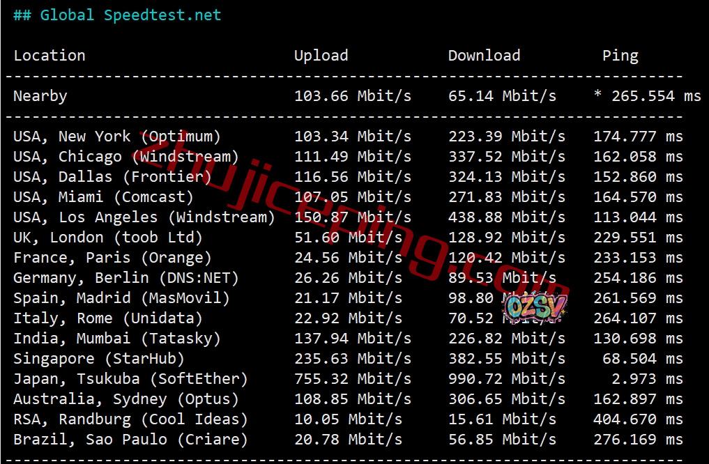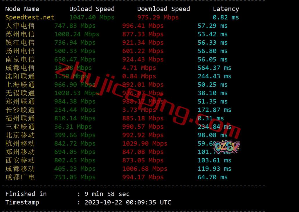 用speedtest在国内的三网多个节点跑一下上下行,看看可以冲到多少吧?大致数据: