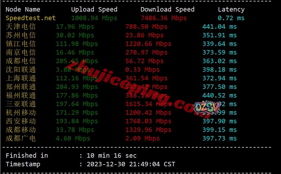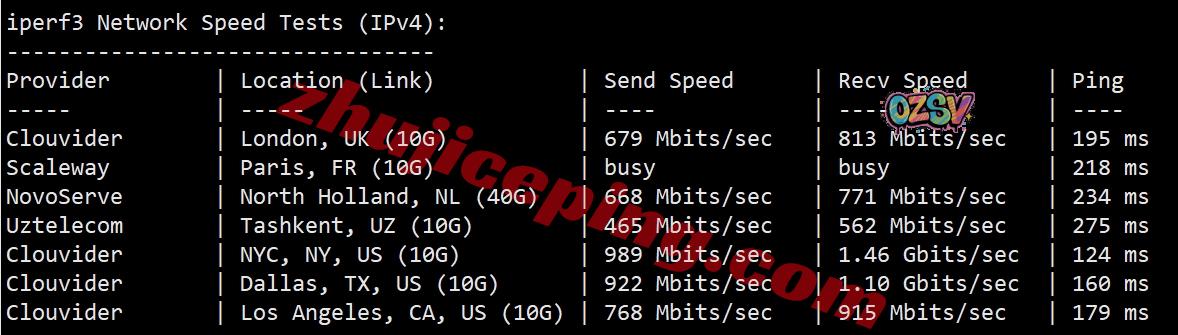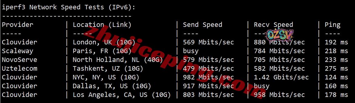 iperf3测试,IPv6环境下,几个欧美节点的数据: