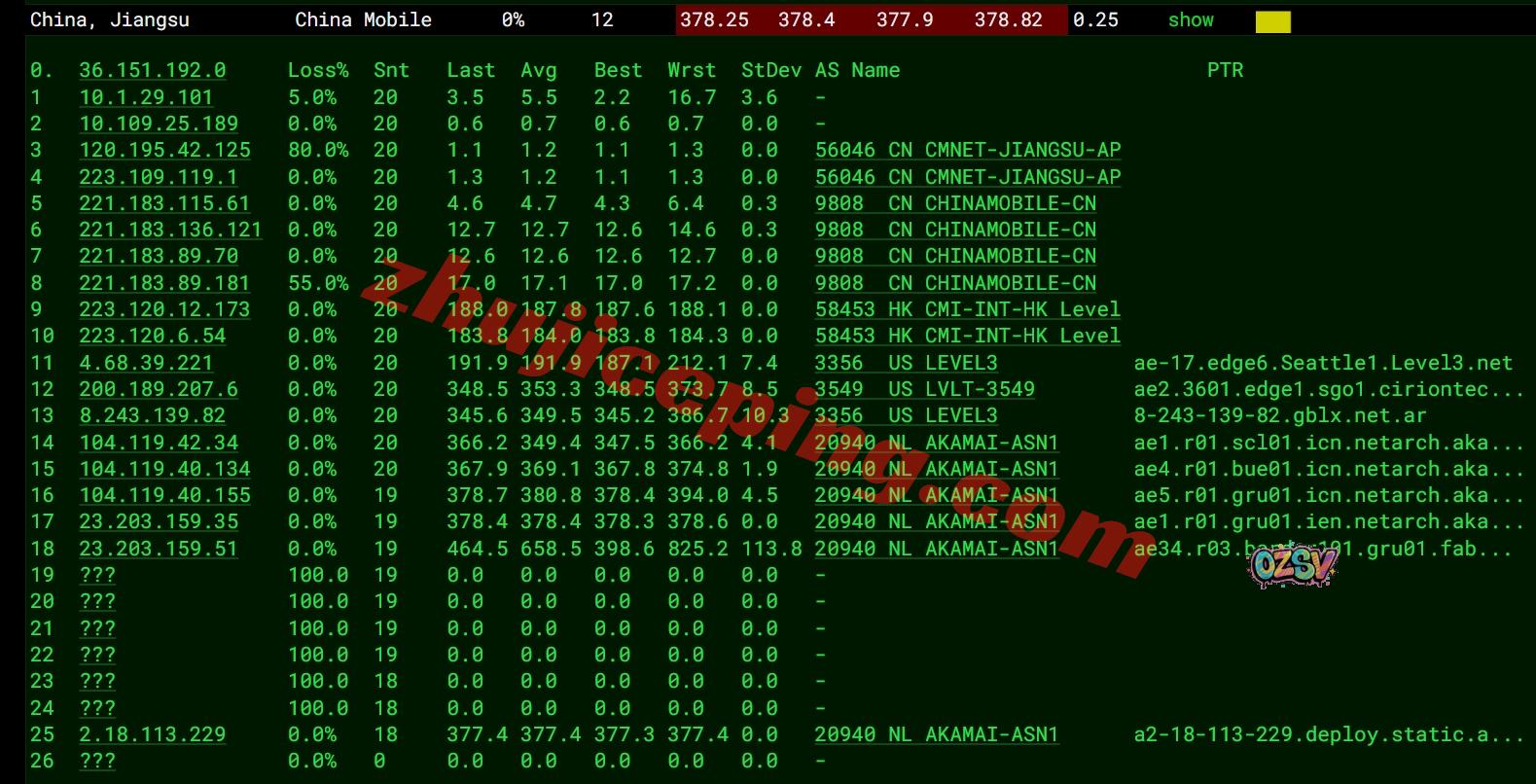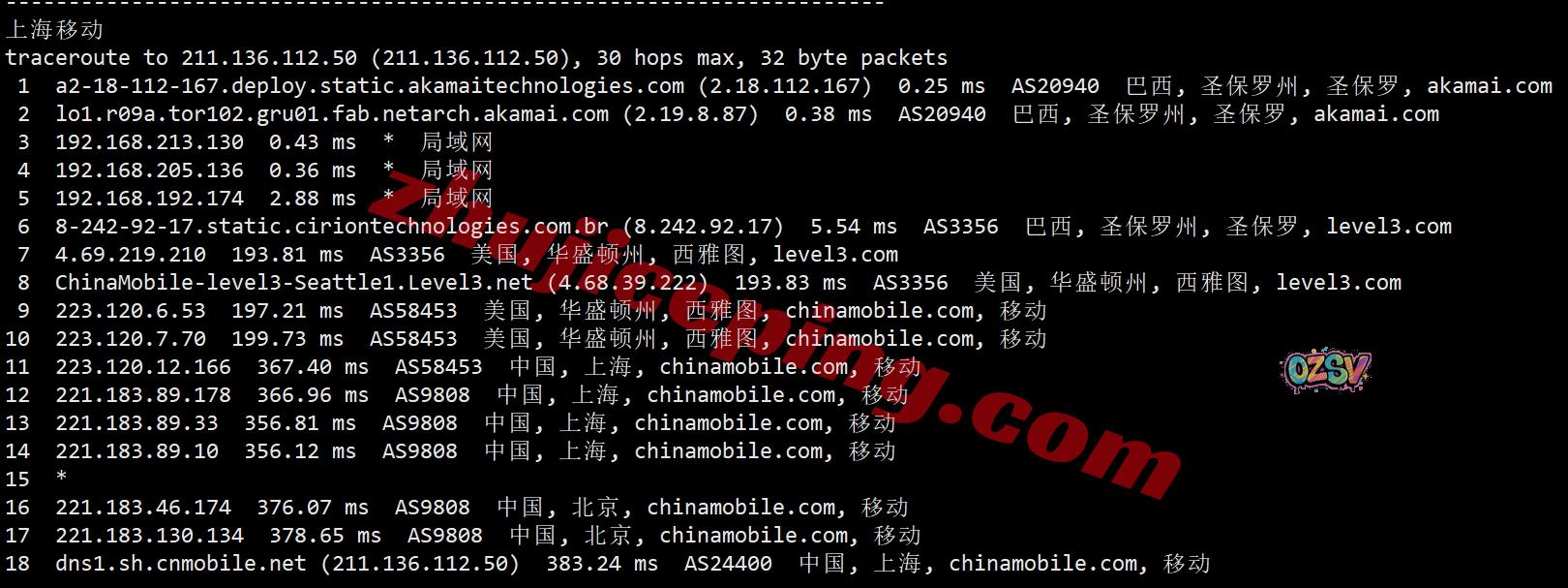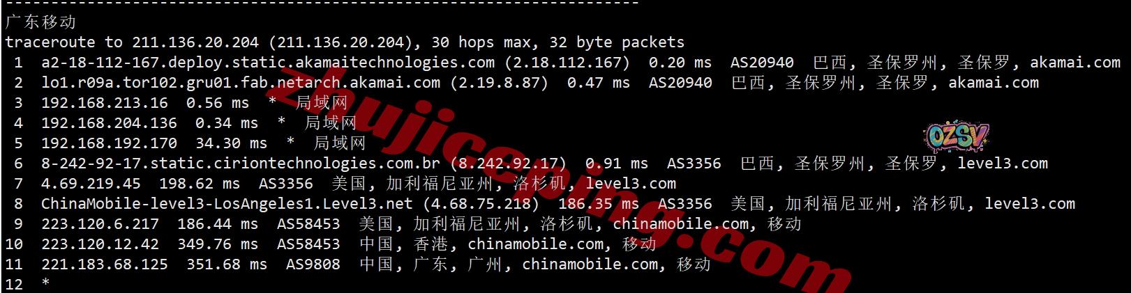 移动去程:直连移动西雅图节点然后走level3经过智利去巴西