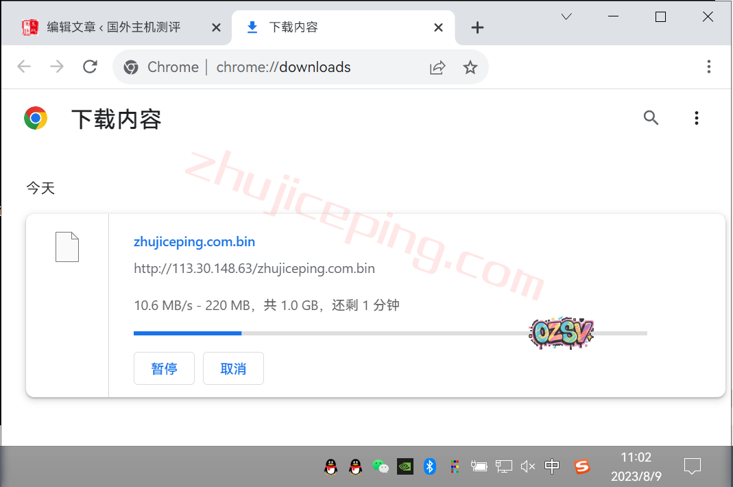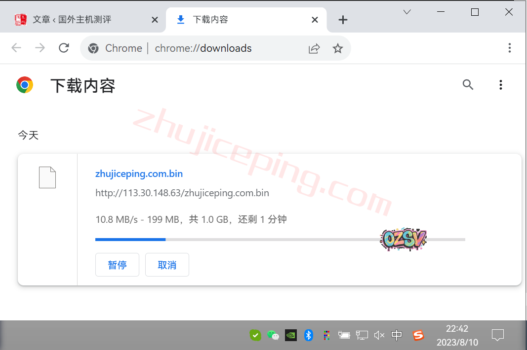 存放在测试云服务器上面的文件,广州联通家庭宽带直接用浏览器下载,大致速度: