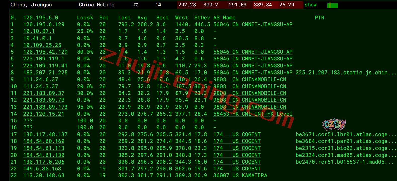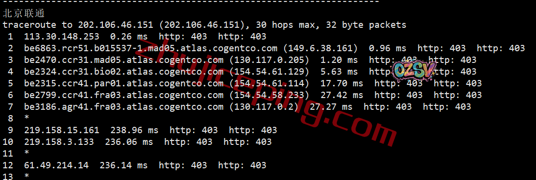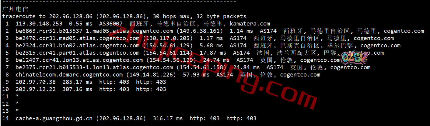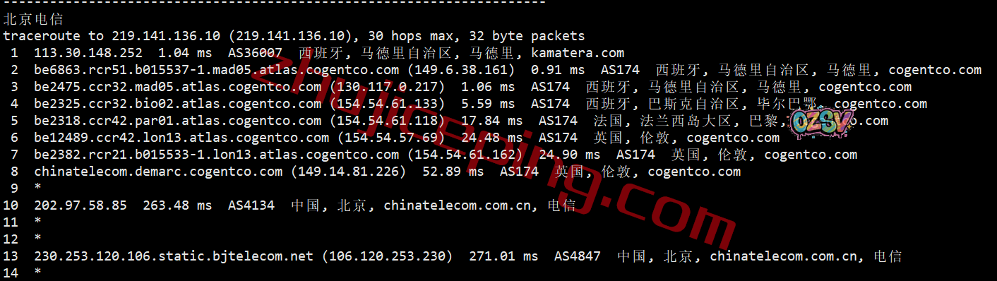 电信回程:走cogent经过法国、英国,从电信与cogent在伦敦的peer回国