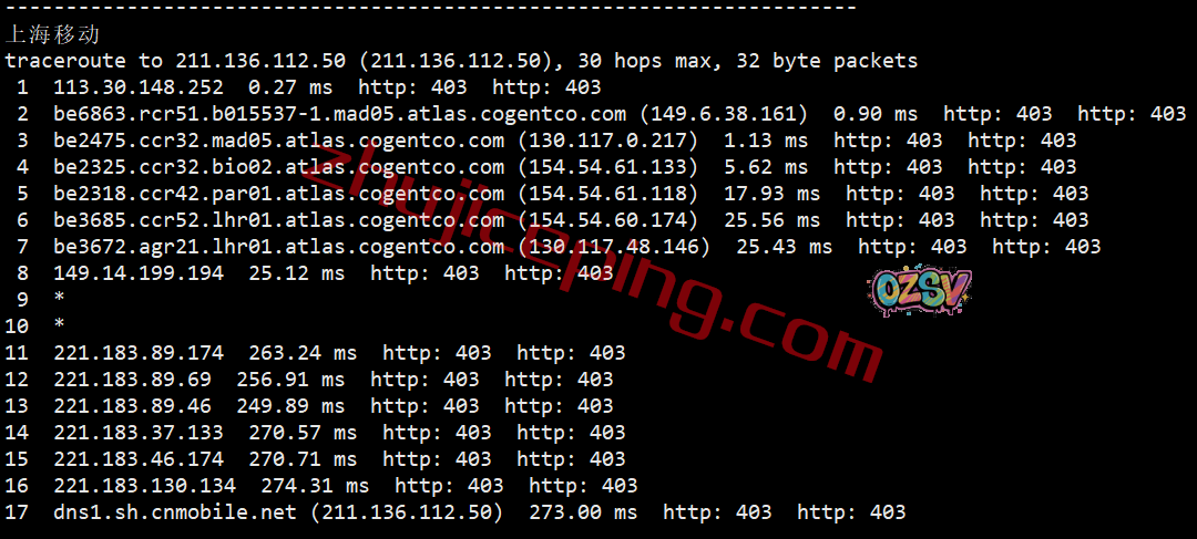 移动去程:直连移动伦敦节点然后走cogent经过法国等最后去西班牙