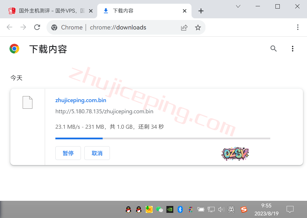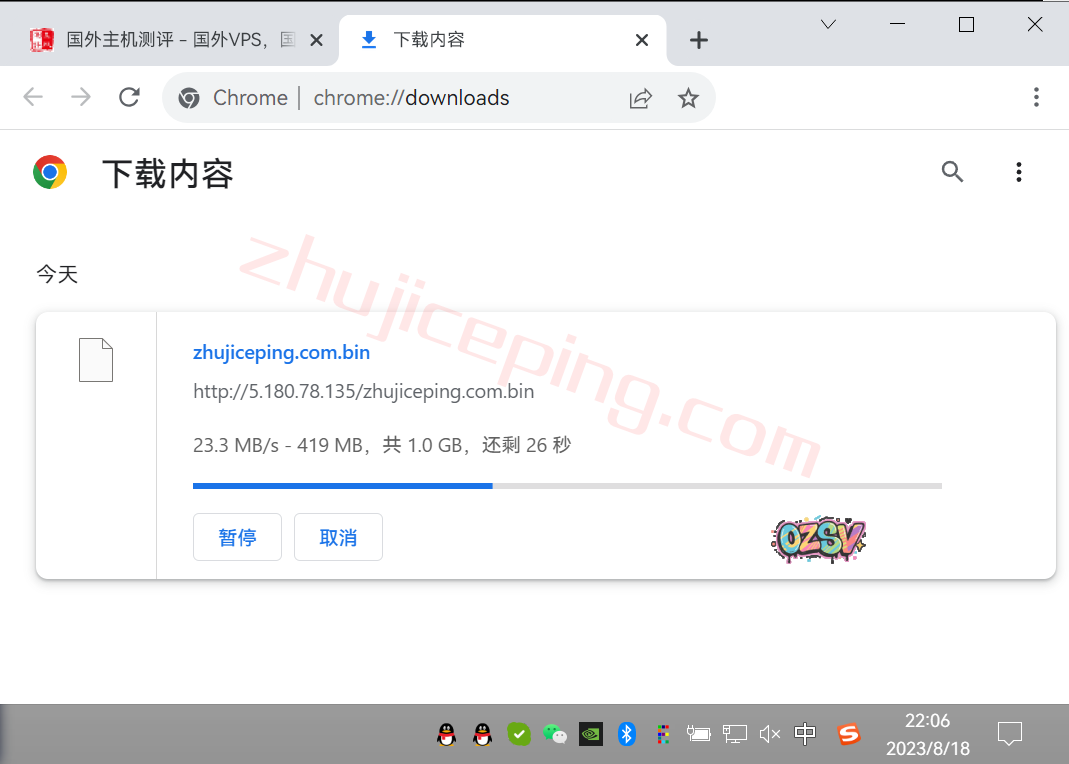 存放在测试VPS上面的文件,广州联通家庭网络,直接浏览器下载,大致速度: