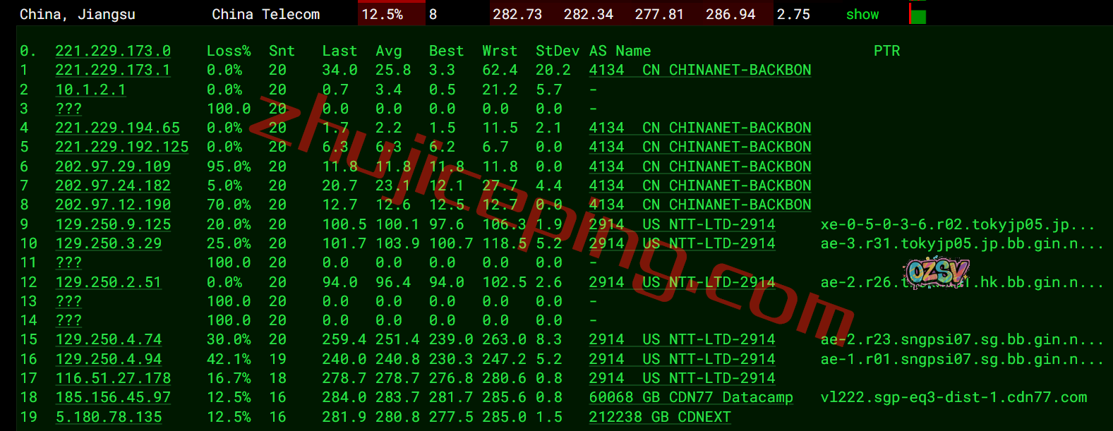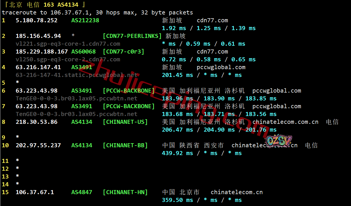 电信去程:骨干网对接NTT先去日本然后从香港去新加坡