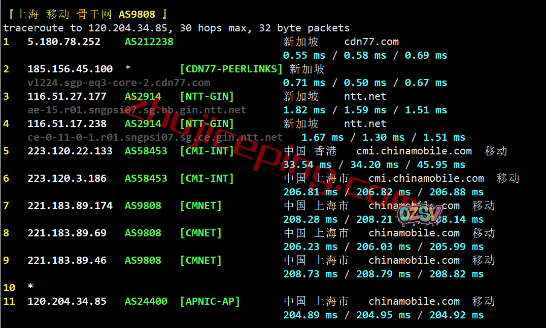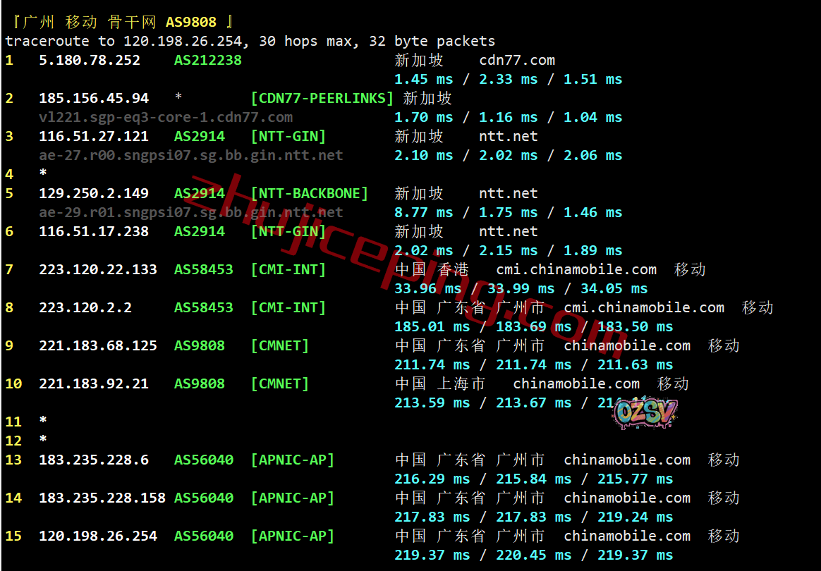 移动回程:走新加坡NTT到香港NTT转香港CMI回内地