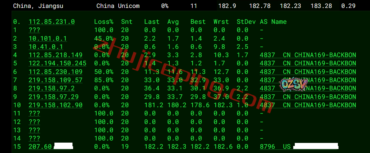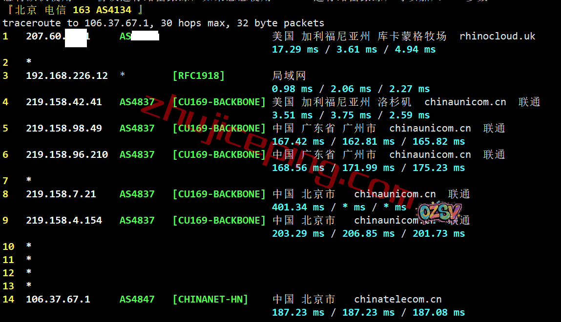 联通去程:AS4837直连,隐藏了部分信息,估计怕被打