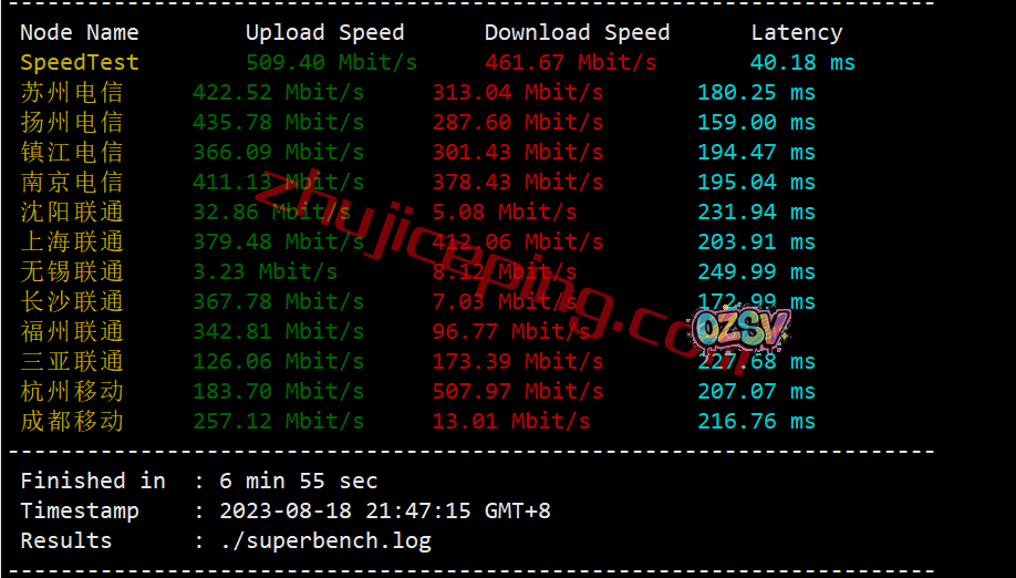 国内三网多节点的上下行带宽测试数据:
