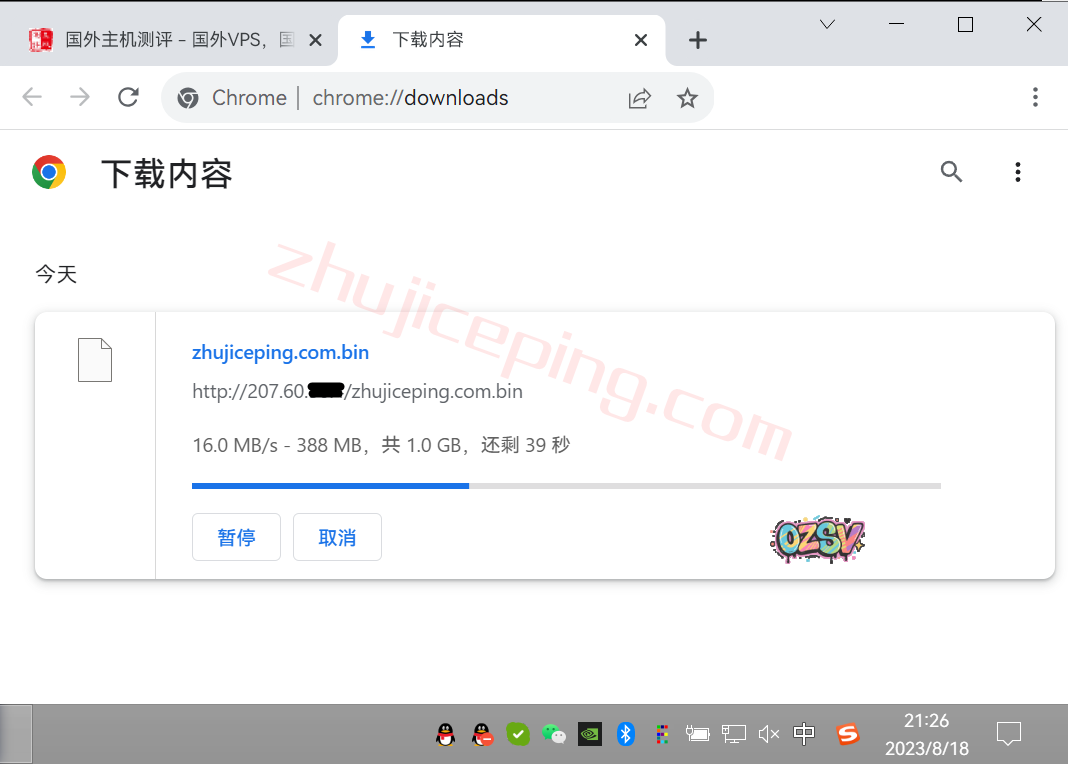 存放在测试小鸡上面的文件,广州联通家庭带宽下载速度: